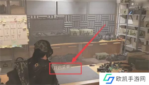 1、首先玩家们进入游戏之后,然后就需要来到在基地,然后来到左侧的仓库那里,随后点击“开启装备菜单”的选项。