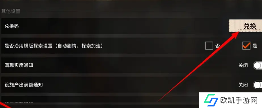 2、然后在设置页面,点击其他栏下的兑换按钮(如下图所示)