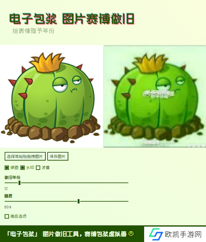 电子包浆生成器是什么?电子包浆生成器是一个可以将高清图片一键制作成怀旧渣画质的工具,通过这个工具做的包浆图片很适合做表情包,选择一张适合的图片,变成包浆画质,再配上文字,做表情包简直完美!有了这个工具之后大家可以自己来制作,超简单!