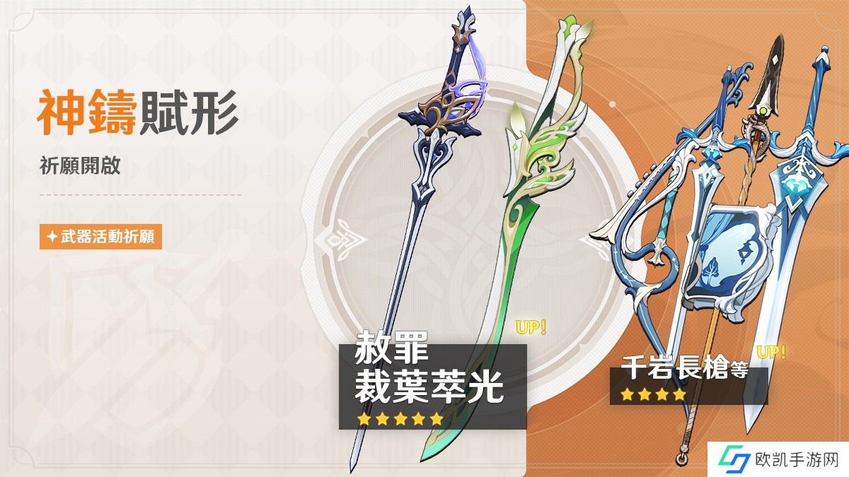 「神铸赋形」祈愿:「单手剑・赦罪」、「单手剑・裁叶萃光」机率 UP