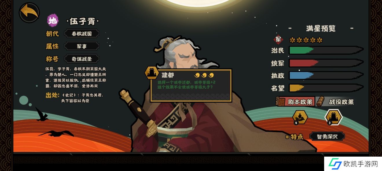 新名臣只有一个伍子胥。在游戏第二年518年姑苏出现。