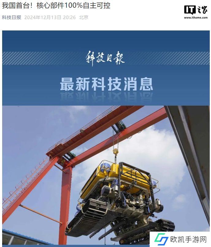 本站 12 月 13 日消息,据“科技日报”报道,12 月 12 日,记者从南方电网广东电网公司获悉,由该公司牵头研制的我国首台作业时速公里级水下敷缆机器人近日完成下水测试。