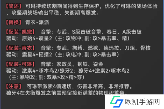 注意,可琳可以通过连携技,支援技换入前场,触发激素4,打一套爆发。在失衡期之前20秒时间内尽量不要触发激素套。