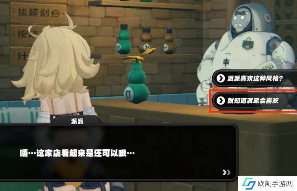 然后来到广映广场找派派对话,选择“就知道派派会喜欢”。