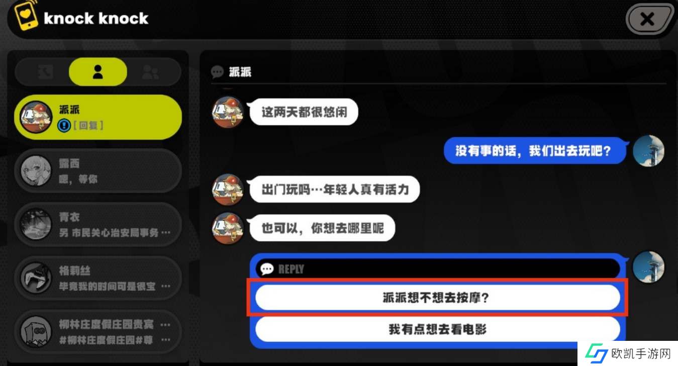 邀约1,选择“派派想不想去按摩?”