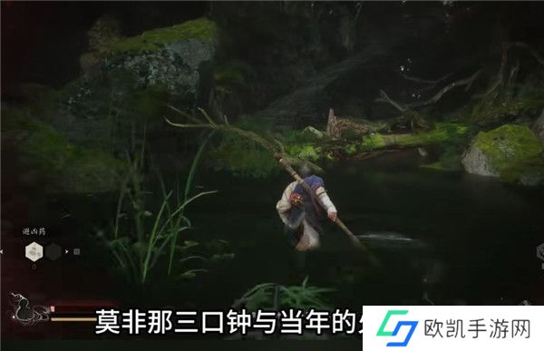 9.此人所言不像假话,小猴子你可暗自留心,先回到与广智交战的苍狼林,后面真的有口钟,撞钟后发现旁边有一具尸体吊在旁边的树上,一群小妖保卫着这里。