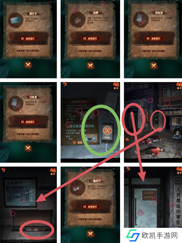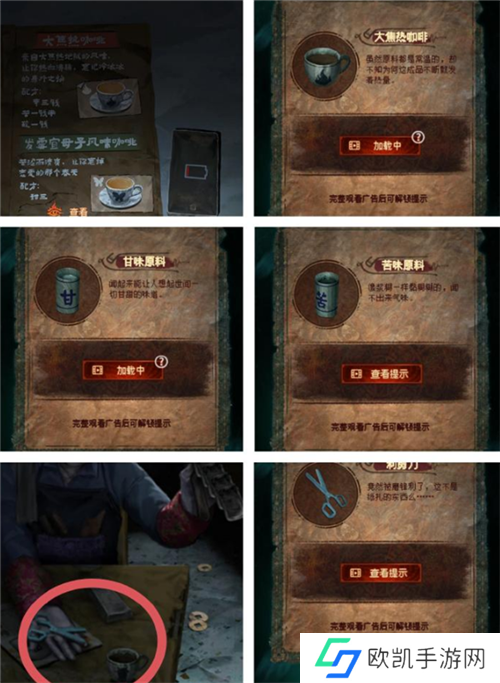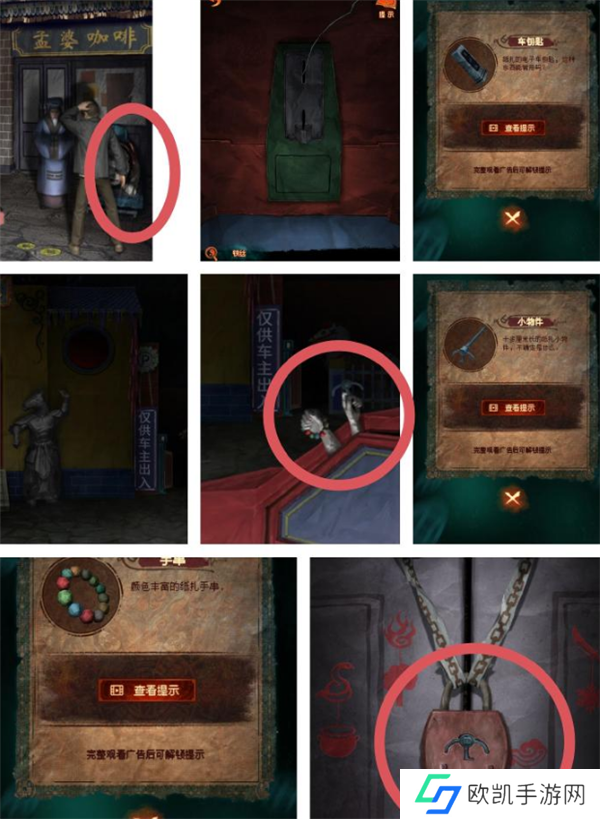咖啡馆大门剪纸和马面雕像吊饰位置是解开牛头雕像吊饰的关键。