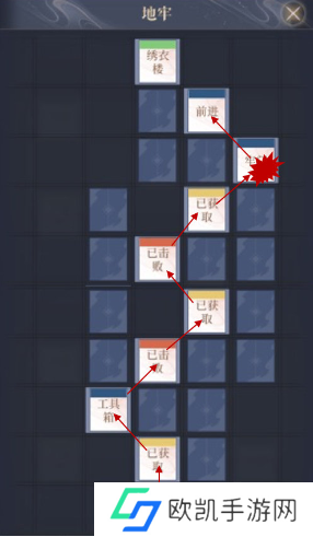 3、地牢:前进-木匣-工具箱-敌人-木匣-敌人-木匣-牢门-前进