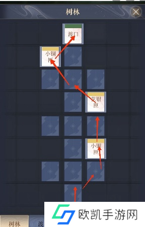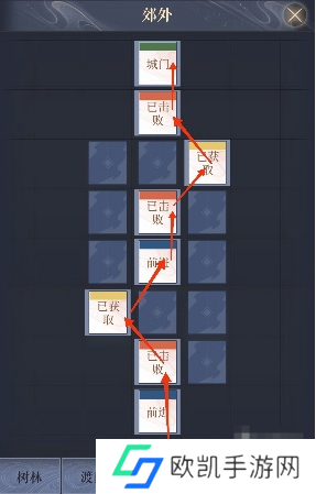 3、河道:侍女-前进中-遗失木匣-遗失木匣-前进右-遗失木匣-西凉军-前进右-侍女-郊外