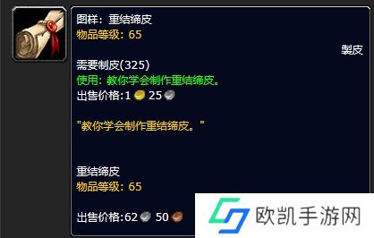 魔兽世界中制皮技能提高后可以购买图纸来制作重结缔皮,还可以通过击杀野外的野兽在其身上剥皮来获取,不是剥皮的玩家得通过拍卖行购买了,一组重结缔皮购买就得2金50银。