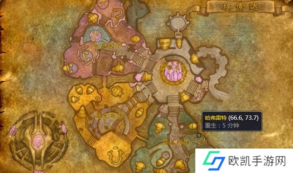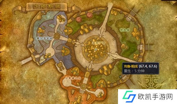 2、在沙塔斯城找到NPC克鲁粗线(坐标67.4、67.6)、埃索达找哈弗雷特(66.6,73.7)、银月城找萨拉尔(84.8,78.6)。