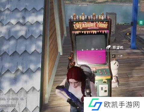 2、到达仓库门口就会看到一台许愿机,完成对话后得知许愿机没电并阅读一旁的纸条。