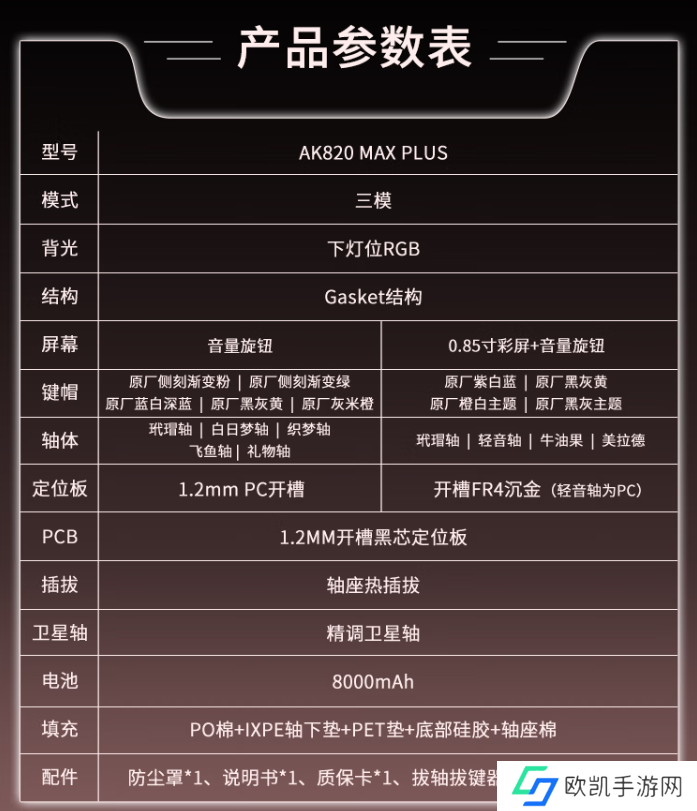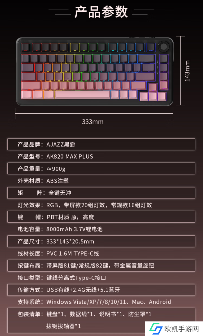 本站附黑爵 AK820 MAX Plus 三模机械键盘产品参数如下: