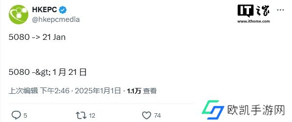 @HKEPC 今日爆料称,英伟达新一代 GeForce RTX 5080 显卡将于 1 月 21 日上市。当然,该日期可能仅适用于 RTX 5080,因为 RTX 5090 和 5070 Ti 预计不会与该型号同时发布。