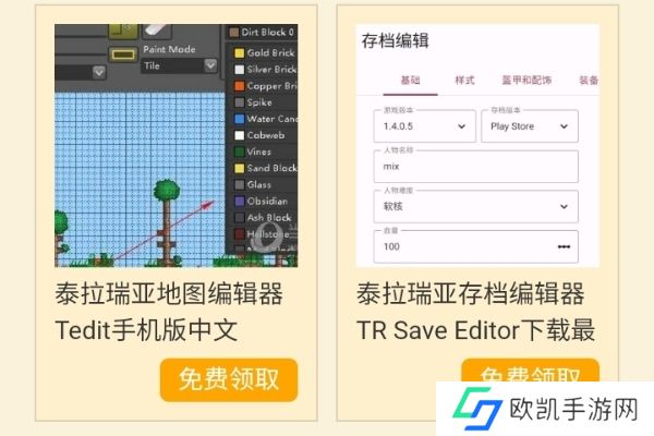 1、下载手机版的地图编辑器和存档编辑器(点击软件名进入下载)。