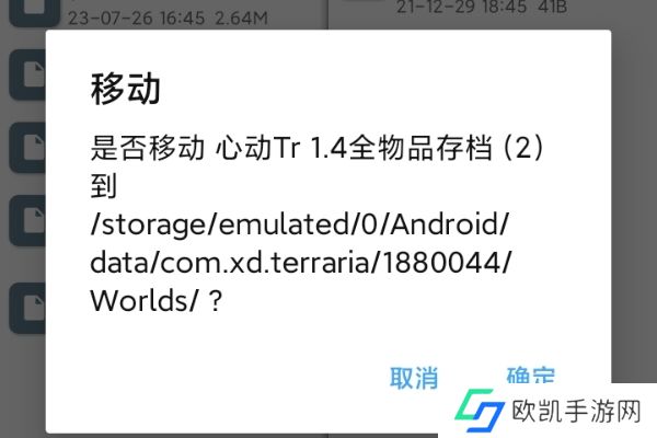 5、选完后在右边找到保存的全物品存档并长按,移动你的文件就ok了!