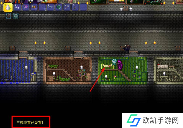 3、然后玩家们靠近床,然后鼠标点击床,左下角就会弹出来消息,出生位置已经生成,完成重生点设置。