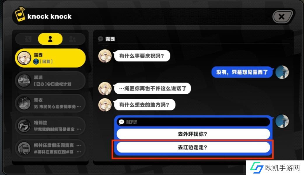 邀约2.选择“去江边走走?”