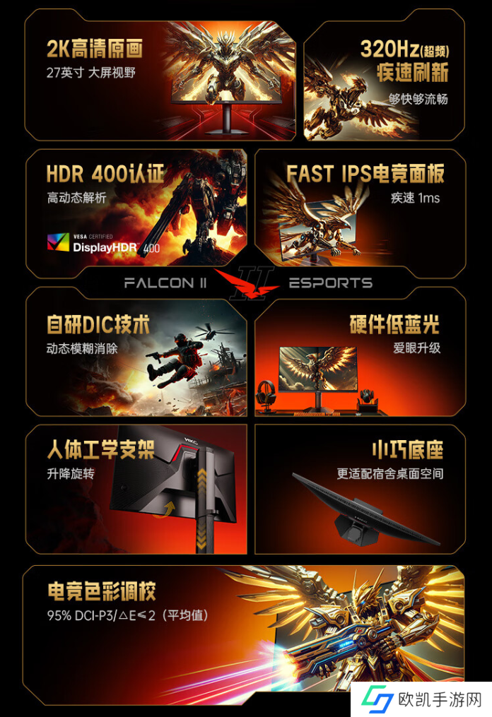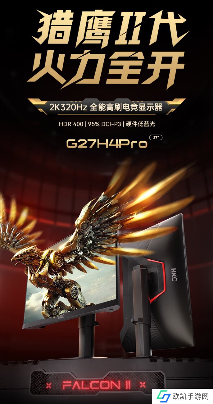 京东 HKC“猎鹰二代 G27H4Pro”显示器 2K 320Hz(超频)| 人体工学支架首发 1599 元直达链接