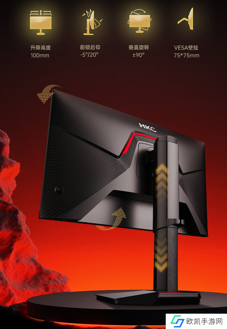 HKC“猎鹰二代 G27H4Pro”显示器搭载自研 DIC 动态模糊消除技术,支持硬件低蓝光。显示器配备人体工学支架,支持 100mm 升降高度、前倾后仰-5°/20°、垂直旋转 ±90°、VESA 壁挂(75*75mm)。