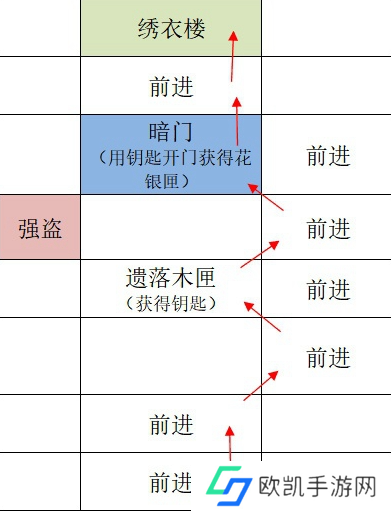 5、废墟:前进-前进-前进-遗落木匣-前进-暗门-前进-绣衣楼