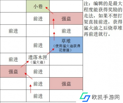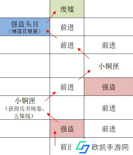 4、小巷:前进-强盗-小铜匣-前进-小铜匣-前进-强盗头目-废墟