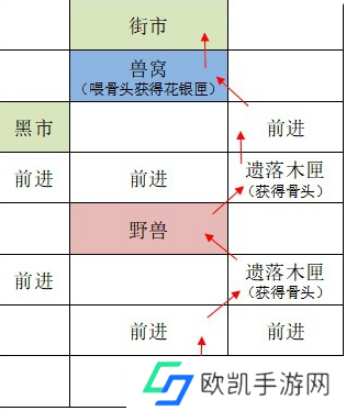 1、地道:阿蝉-前进中-遗落木匣-野兽-遗落木匣-前进-兽窝-街市