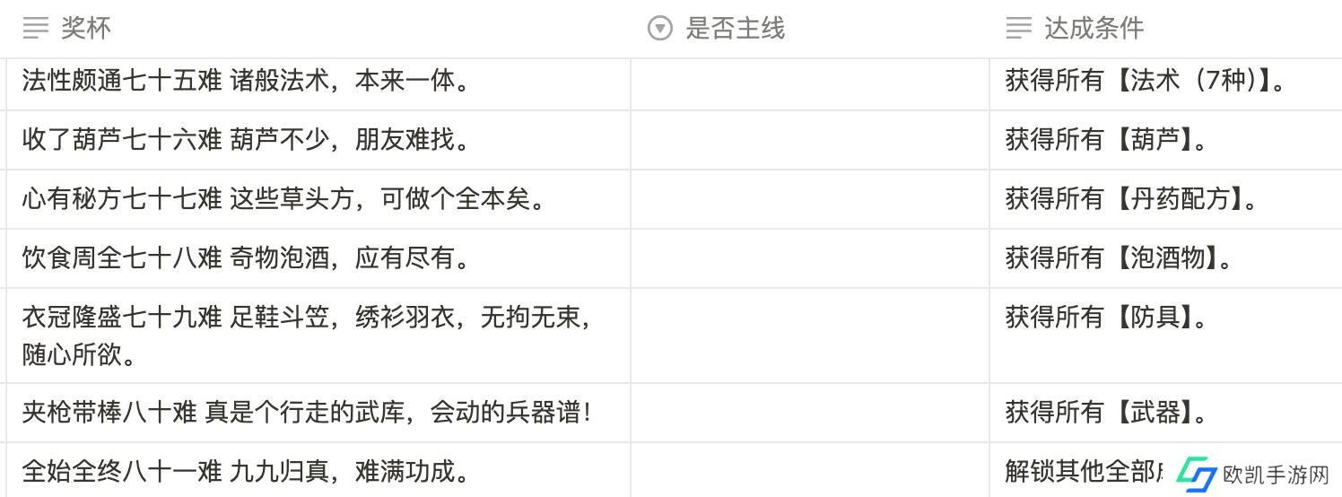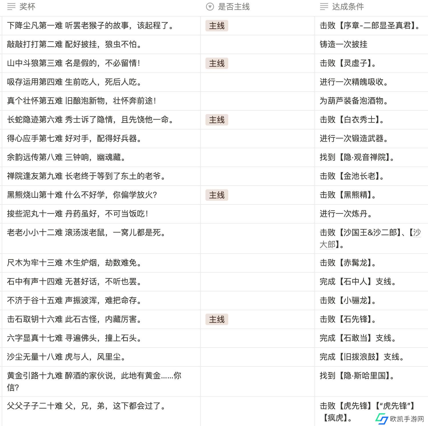 《黑神话:悟空》中也设定了九九“八十一难”,在游戏中是以成就的方式呈现的,想要都完成也不简单,今日带来的就是这八十一个成就的完成条件,了解了对应的成就要求,玩家不论是在几周目,在主线或支线,都可以顺带将成就完成,接下来就一起看看吧。
