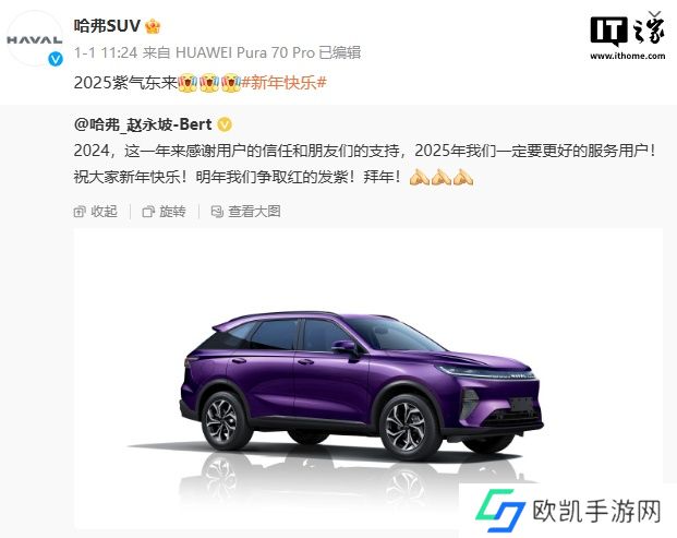 本站 1 月 5 日消息,本月初,哈弗品牌总经理赵永坡在社交媒体上发布了一张哈弗全新车型的官图,预计为去年 10 月完成工信部申报的新款哈弗 H7。