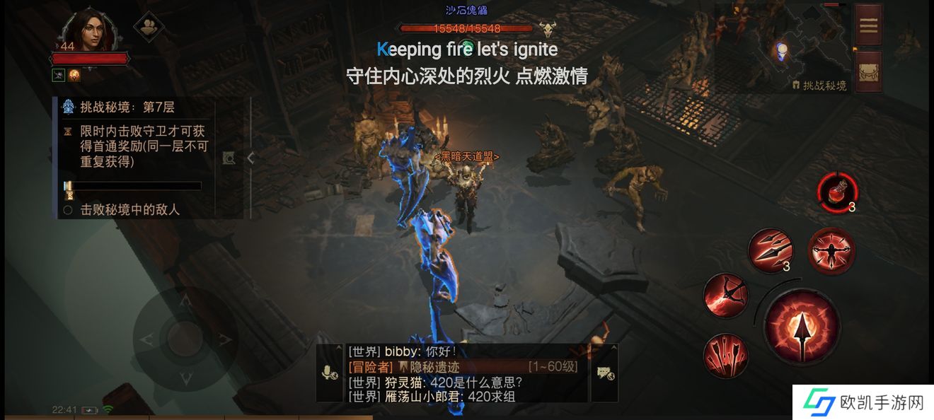 虽然它们在秘境里不会爆太多经验和装备,但是它们会爆大幅增加进度条的小球,所以这就引出了我的打法,开局无视小怪,直接跑图找经验怪和装备怪,因为你在走的途中也会带动一些小怪,等你找到经验怪和装备怪的同时也能一锅端了,但是这种打法可能会因为惨遭怪物群殴而去世,所以要留心血量,重生虽然不会重新打,但是会增加时间,所以技能该用就用,不要想着留个技能针对boss什么的,没必要。