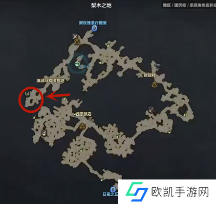 1、我们来到卢特兰东部,进入梨木之地,找到位于梨木之地最西处的恶魔商人纳弗塔。