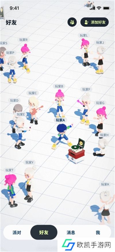 3、好友广场:朋友是派对中不可或缺的元素。点击右上角的“添加好友”,让你的朋友们也出现在你的广场,一同分享欢乐。