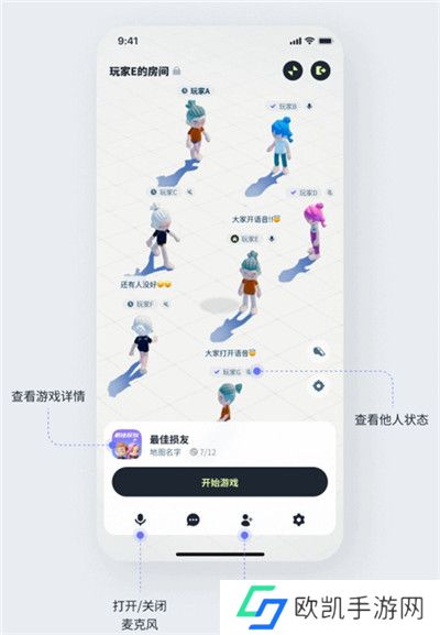2、派对广场:首页上每个角色都代表着平台上的活跃玩家。你可以点击感兴趣的角色,查看他们的状态,与他们聊天,甚至加入他们的游戏。
