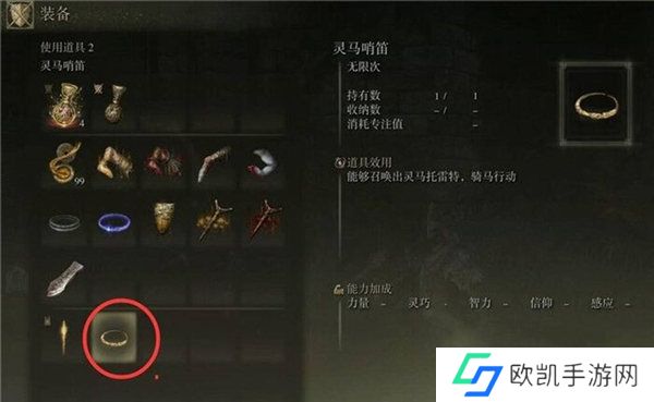 4、在道具栏中使用灵马哨笛,即可召唤马。