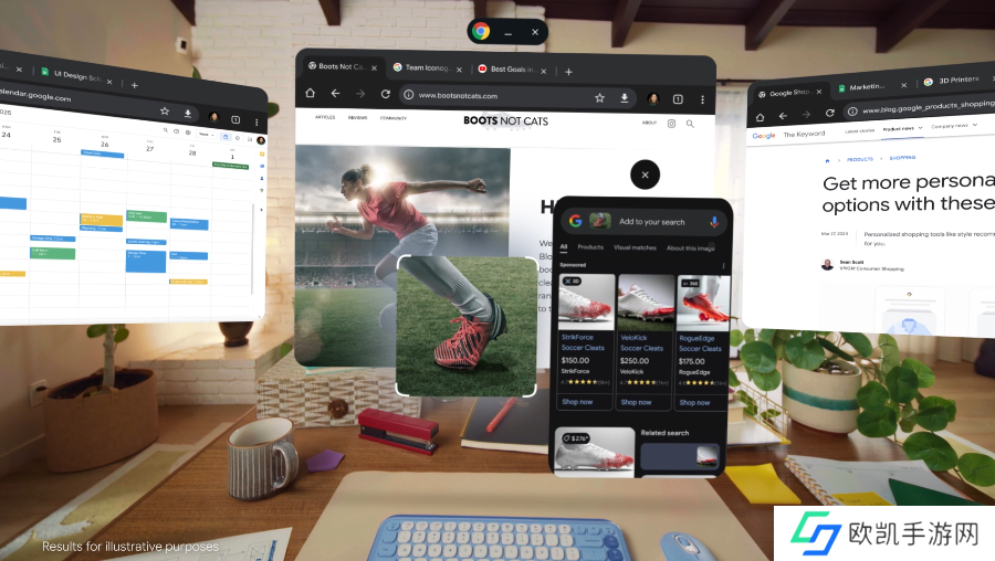 Android XR 的发布视频中并未透露太多细节,仅展示了头戴设备的渲染图和“概念化设计”示例。据谷歌介绍,XR 平台将支持 Gemini、Google Maps、Google 相册、翻译、Chrome、圈选即搜等应用,同时也为现有 Android 应用(本站注:需要经过适配)提供支持。