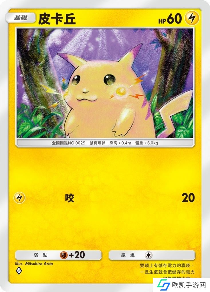 右上方为HP、卡面中的「咬」为皮卡丘的招式