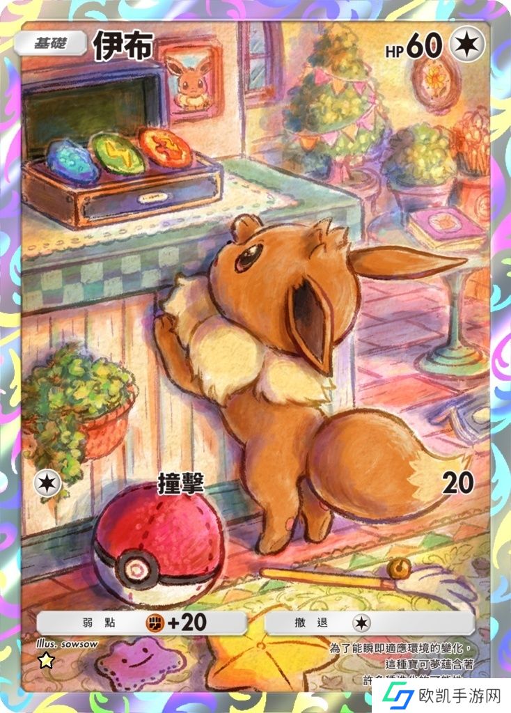 卡牌中用圆圆的眼睛望着神奇石头的伊布,样子非常可爱。在卡牌当中,也有插画占满整张卡面的特别卡牌。如果幸运遇见了这种卡牌,请务必展示给大家看看喔。