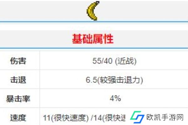 2、它的近战伤害为55,击退力较强,暴击率为4%。