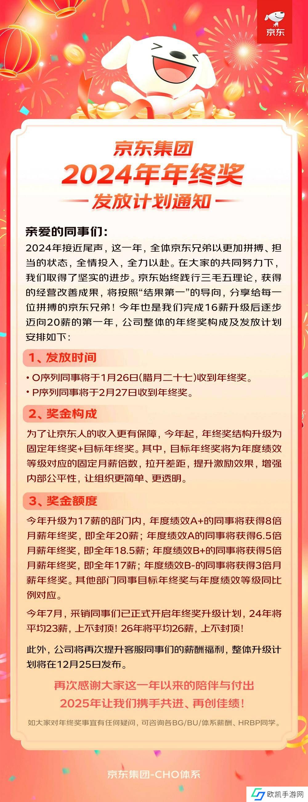 12月23日,京东发布了2024年年终奖发放计划,实现17薪的部门内年度绩效A+的员工将实现20薪,京东采销2024年平均23薪。