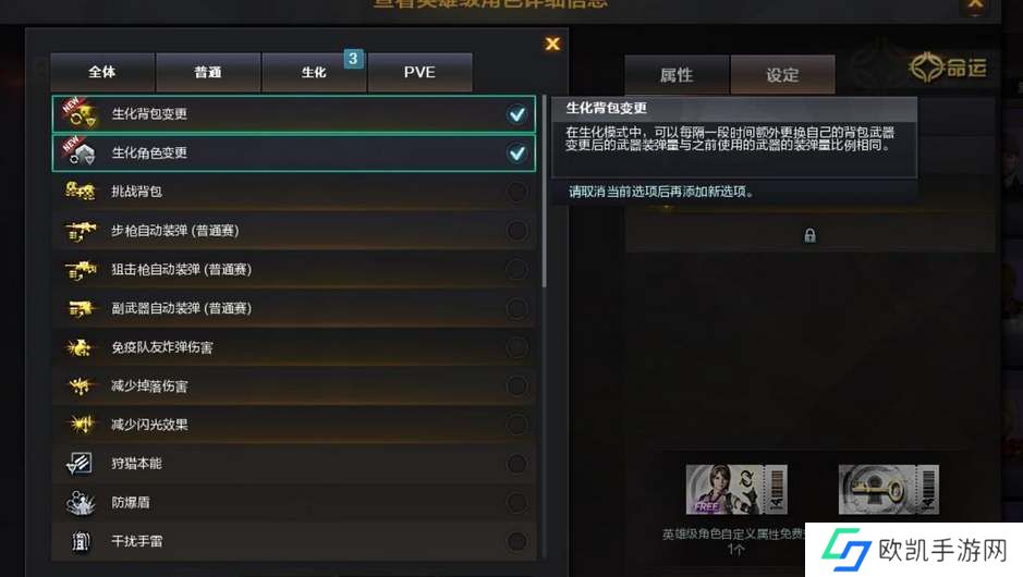 cf生化换背包变更是什么属性