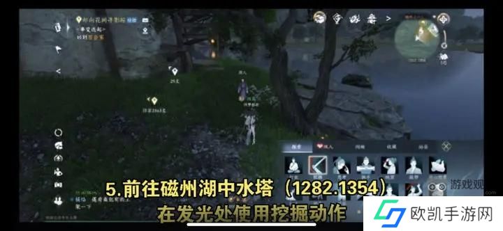 5、前往磁州湖中水塔(1282、1354),在发光处使用挖掘动作,开箱后获得线索七