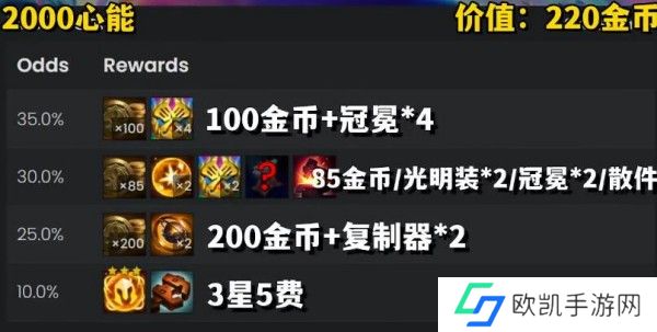 4、2000心能:大量金币、冠冕、光明装备、大妮蔻或三星五费;