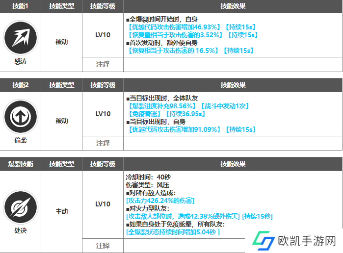 2、首先先看技能,她的技能跟之前解包情报有很大出入。详细如下: