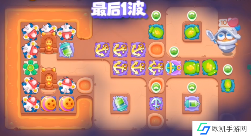 6、最后一波的阵容如下图所示,我们可以参考一下,然后有钱就建炮塔和升级炮塔就可以完成本关。