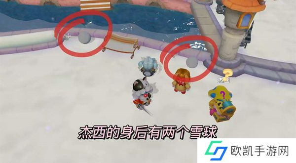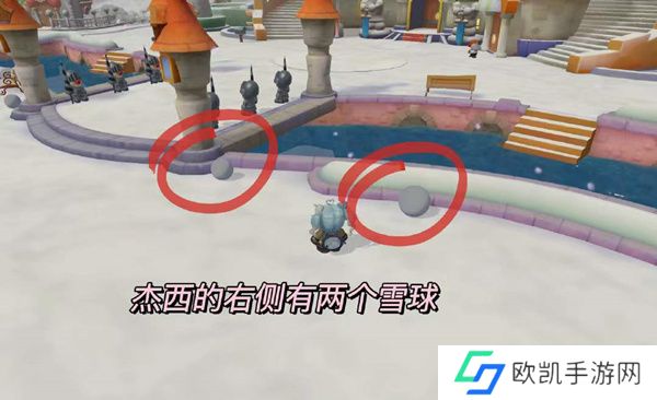 1、来到城堡里,在杰西的右侧有两个雪球。