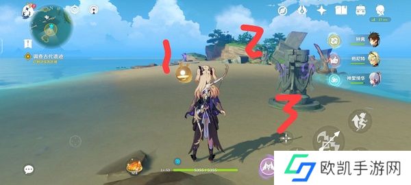 2、我们按照顺序:1-2-1-3,使用菲谢尔按顺序射中四次雷元素方碑;