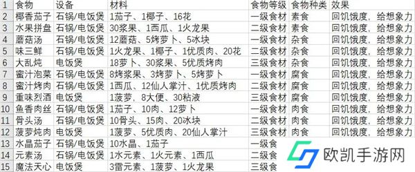 从零开始梦境食材种类大全