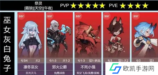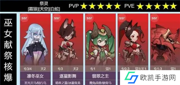 阵容解析:主巫女,副邪狩,赋灵和青铜功能性质辅助,不需求高练度,骑士需要给一定养成,或更换成其他坦克,阵容实用性广,pev和pvp都有不错表现。物法双核可以应付绝大多数阵容。