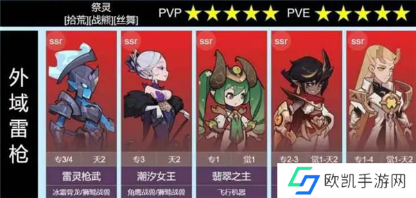 阵容解析:外域又一强力阵容,主养雷枪,女王加速,让雷枪更频繁释放湮灭雷龙进行控制和叠加雷霆咒印,黑龙抗伤,也能与青铜一起拉人聚怪,让雷枪打出更多AOE和控制,翡翠挂件,提供复活,低练度奶量基本无视,可更换其他控制或保护类英雄,雷枪pvp主动用1技能大招,高倍率单伤更快减员
