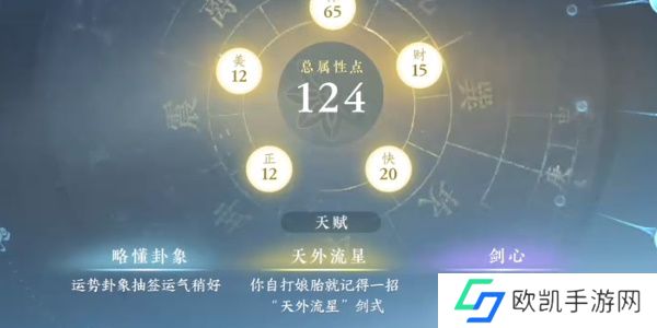 1、开局时天赋选择剑心和天外流星,其余可选自己喜欢选择;